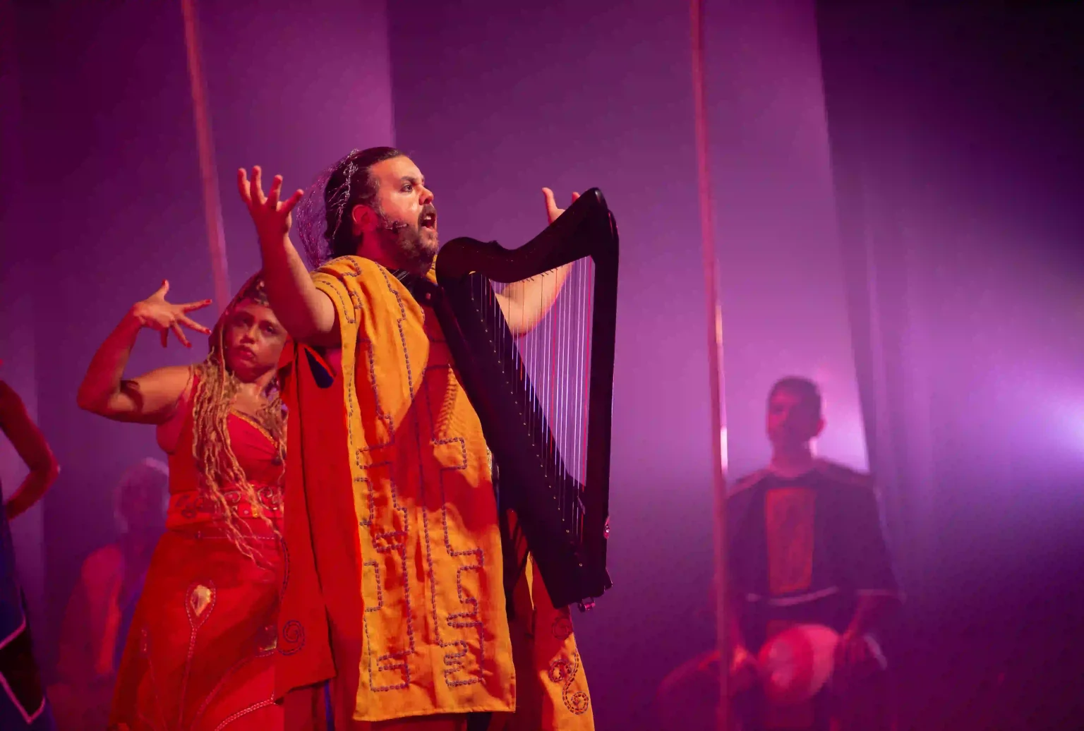 Quando adentramos o teatro e ingressamos no hall, avistamos diversas almas, que, ao iniciar o espetáculo, sobem ao palco e se juntam ao elenco. São essas “almas encarnadas” que dão o norte do musical. Afinal, o que nós somos? Qual é a nossa identidade? Brancos? Índios? Negros? Qual é nossa “alma brasileira”? É desse tema que o musical trata, da formação identitária brasileira, do produto do encontro e mistura dessas raças, marcado pelo conflito e violência, pela luta e resistência.