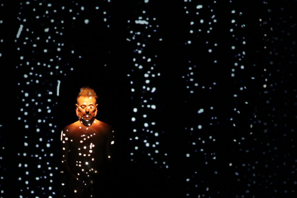 A atuação de André Curti e Artur Luanda Ribeiro é sublime. Beira à perfeição! Eles estão unidos, entrosados e afinados. Eles realizam um conjunto de expressões, gestos e movimentos corporais harmônicos, sincrónicos, proporcionais e equilibrados. Tudo é realizado na justa medida. Chega a ser impressionante, emocionando o público presente. Este fica extasiado, num silêncio e numa penumbra envolvente, em que só escutamos a sedutora e agradável trilha sonora organizada por Federico Puppi. É como se estivéssemos no meio do caos, num abismo profundo, e ao olharmos para o palco, observamos dois corpos, definidos e delineados, que são pura poesia, luz e arte. Eles se movimentam intimamente associados à música, realizando movimentos que fascinam e encantam. Portanto, uma atuação digna de elogios e aplausos.