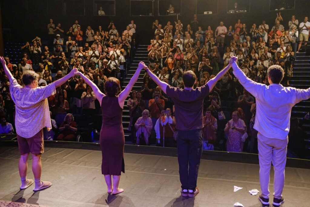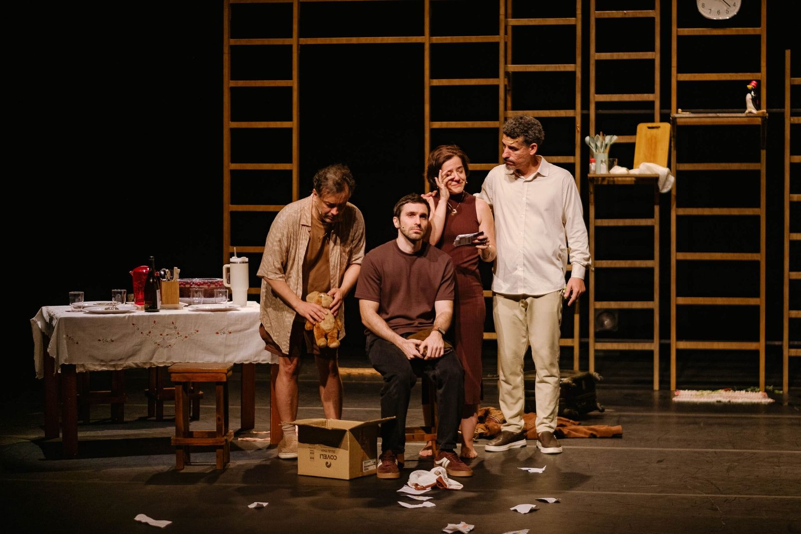 O elenco apresenta uma atuação notável, digna de muitos elogios. Lucas Drummond, Roberta Brisson e Rodrigo Fagundes interpretam os irmãos Victor, Joana e Luiz. O ator Diego Abreu vive Cláudio Márcio, marido de Joana. O grupo está unido, entrosado e afinado, interpretando com qualidade e emoção. Os atores fazem rir, emocionam e contagiam a plateia. Dominam o texto com clareza, utilizando uma linguagem acessível e simples. Também dominam o palco, movimentando-se intensamente e preenchendo todos os seus espaços. Estabelecem uma comunicação direta e eficaz com o público, resultando em atuações sólidas e consistentes.