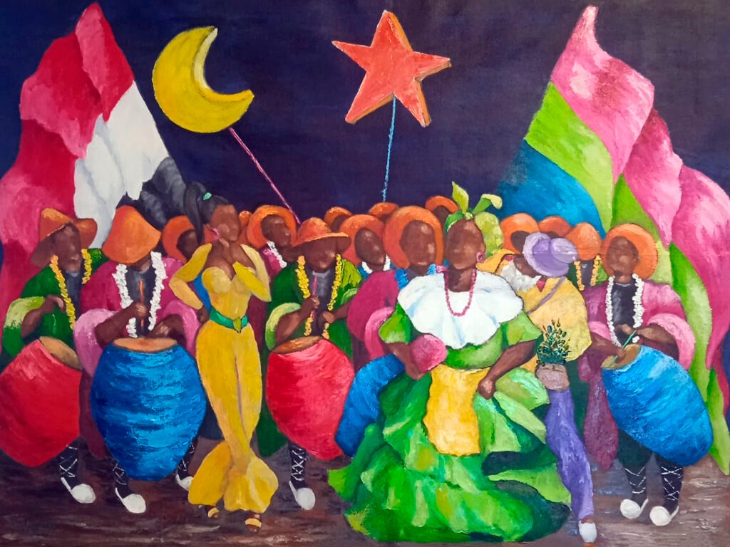 Ganham destaque as telas de Mercedes Davison sobre o carnaval. São Coloridas, alegres, e vibrantes.