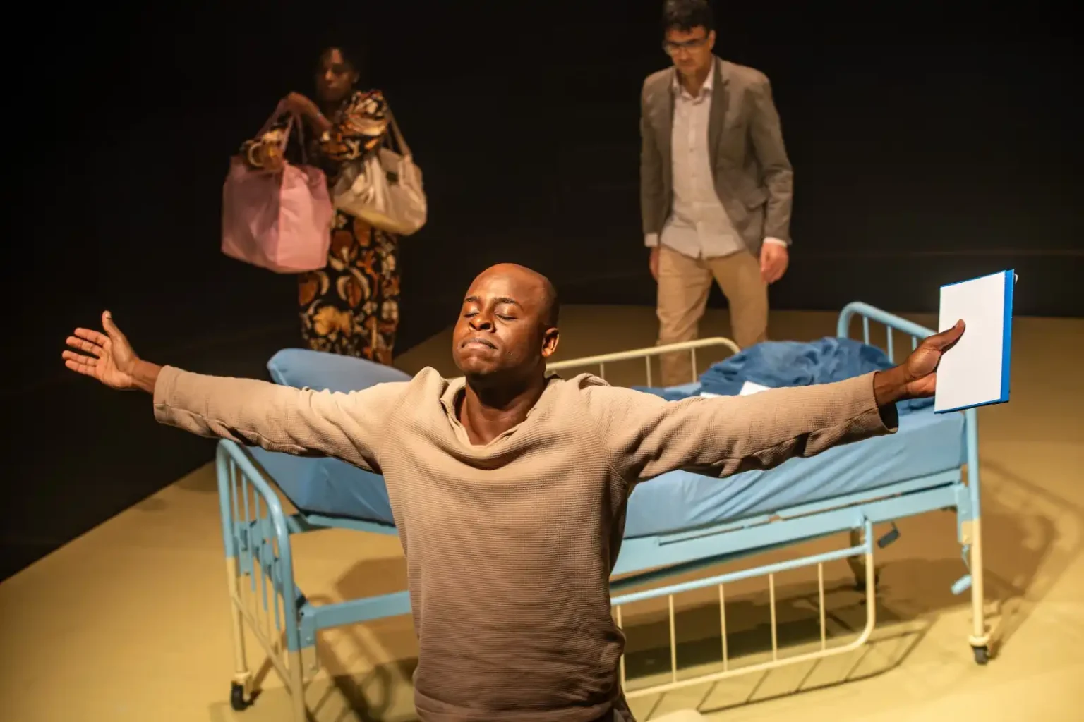A cenografia criada por Anderson Aragón é simples, adequada, e funciona muito bem. É o quarto do hospital onde Lucas está internado. Apresenta uma cama hospitalar e uma cadeira.