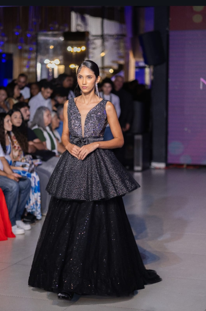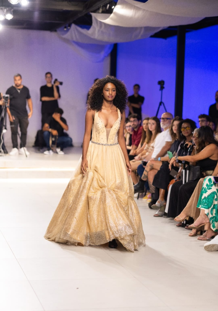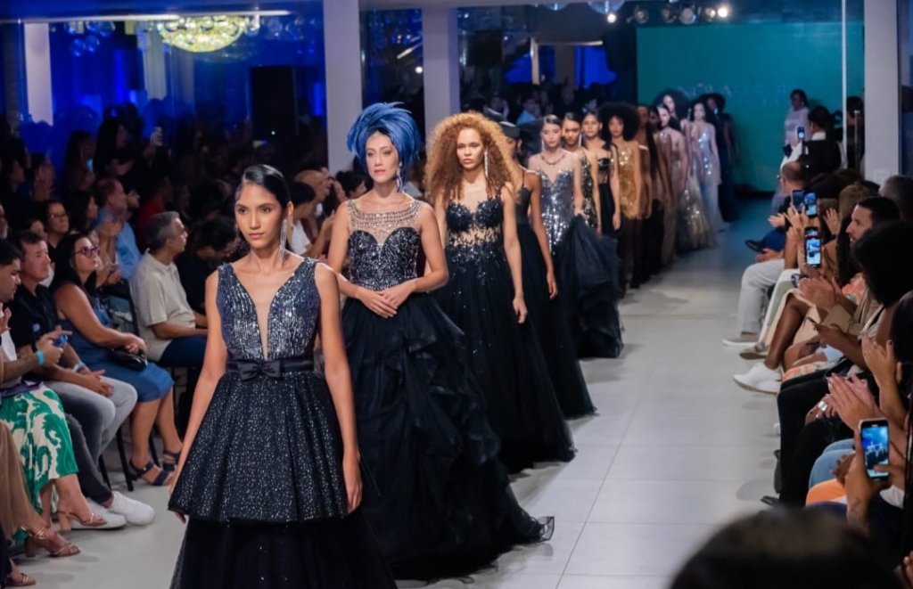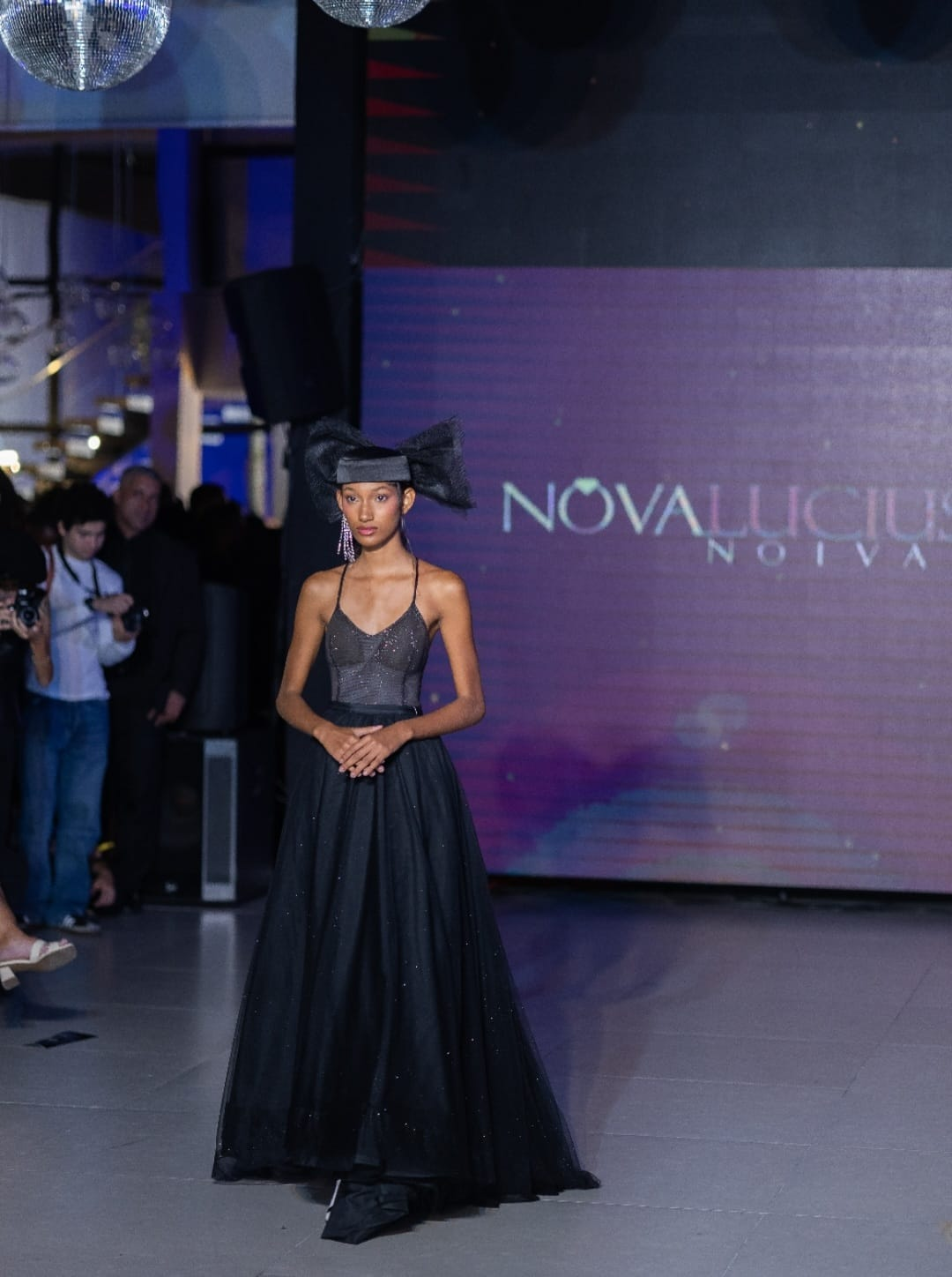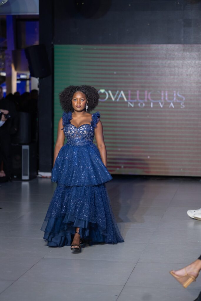 O desfile apresentou tendências de vestidos de festa para 2026 que apostam na sofisticação com fluidez, celebrando a feminilidade através de cortes estruturados (corsets) e saias fluidas. A paleta de cores como azul, tons dourados e preto e o “branco natural” (off-white) ganham destaque, junto a tecidos com brilho sutil (cetim/lurex) e detalhes manuais. Os vestidos de festas não precisam ficar eternamente guardados no armário após cerimônia. Dicas de styling para reuso no desfile da Nova Lucius.