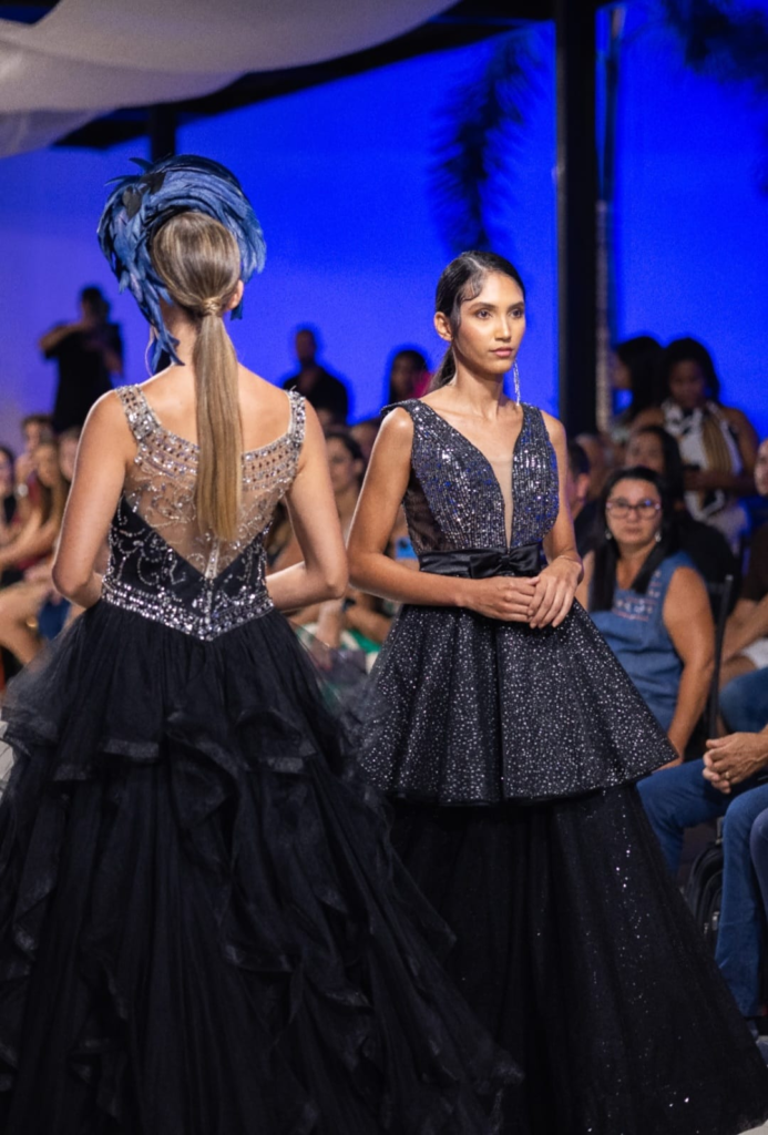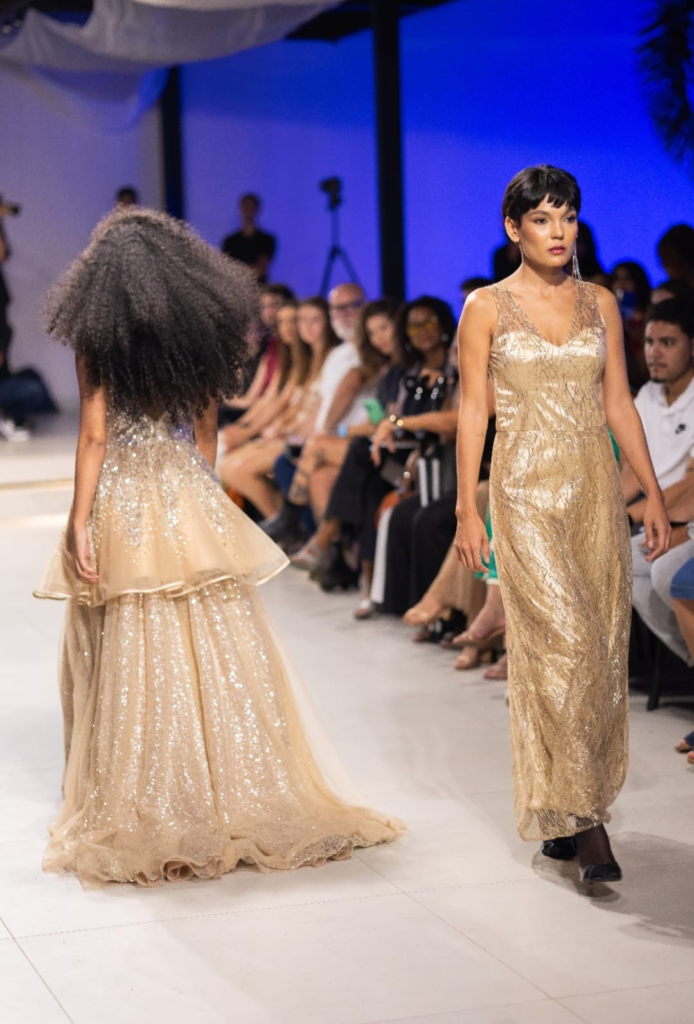 Os tecidos ganham protagonismo, os cortes revelam silhuetas com fluidez e intenção. E os detalhes — como laços, flores artesanais e decotes assimétricos — aparecem como assinaturas de estilo, marcando cada peça com personalidade.