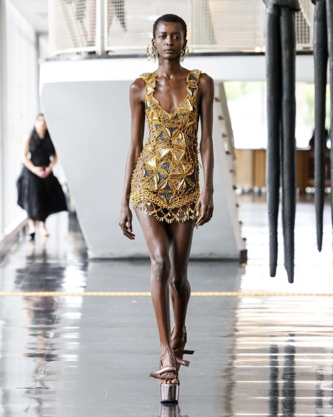 A cartela de cores começa com preto e dourado, depois evolui para rosa-claro, branco e champanhe. Destaque para o casting com maior proporção de modelos trans que o usual de outros desfiles, além de tops como Diane Conterato, Vivi Orth, Amira e Lia.