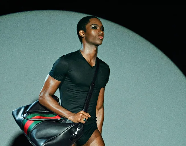Os clássicos padrões da Gucci, incluindo florais inspirados em sua herança florentina, surgem em versões mais contidas. Alguns vestidos leves exibem as estampas rebuscadas da Gucci dos anos 70 e 80, enquanto, em outro ponto, um robe masculino de cetim é inteiramente coberto por um tradicional padrão de gravatas em tom bordô. Chamam atenção os animal prints, como cobra e leopardo, além de alguns looks em pele. Exemplo disso é uma jaqueta volumosa de pele branca que, em outra leitura, seria um manifesto maximalista, mas aqui é suavizada por um conjunto segunda pele em tons neutros.