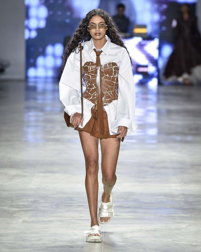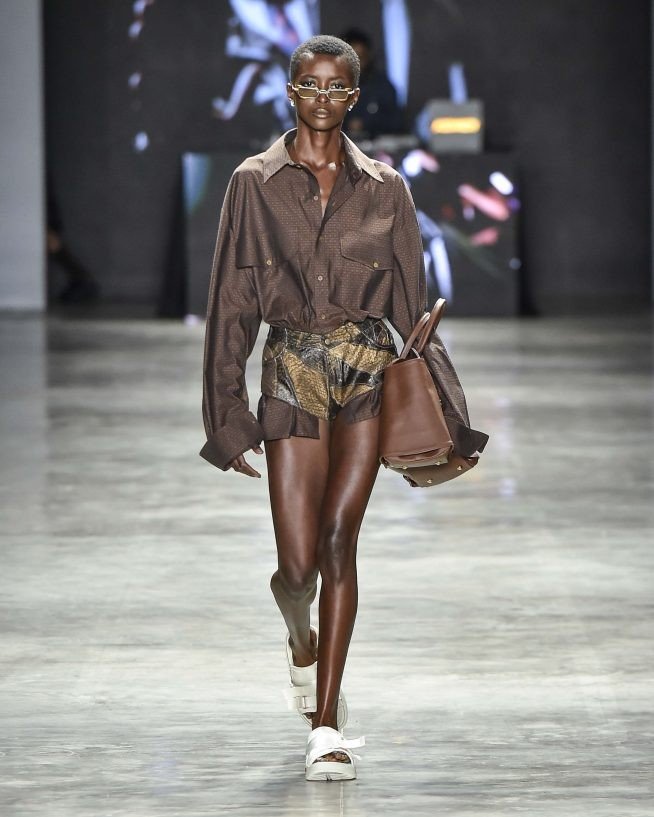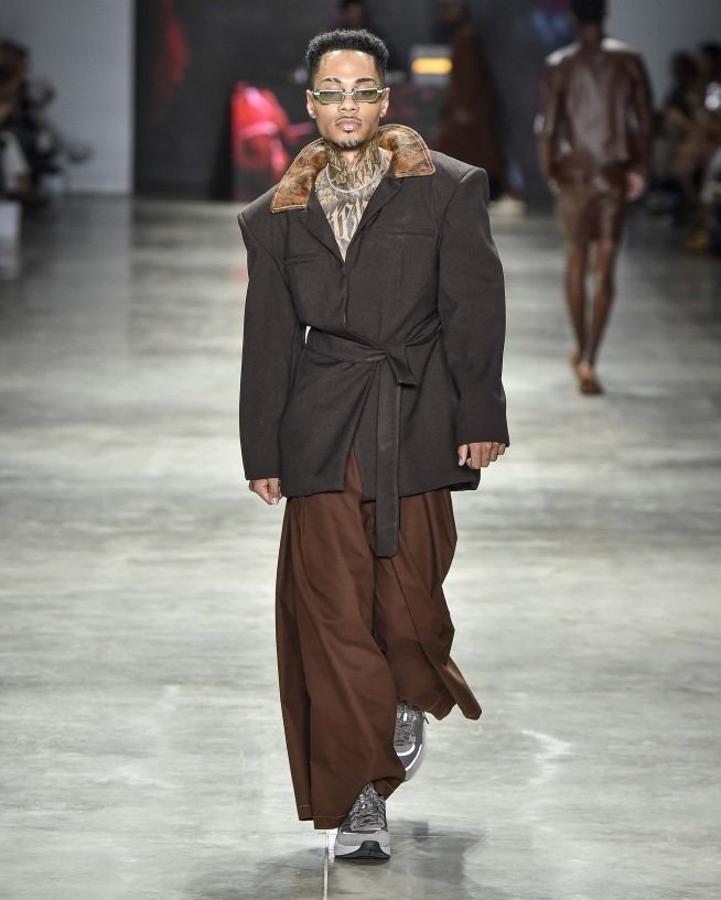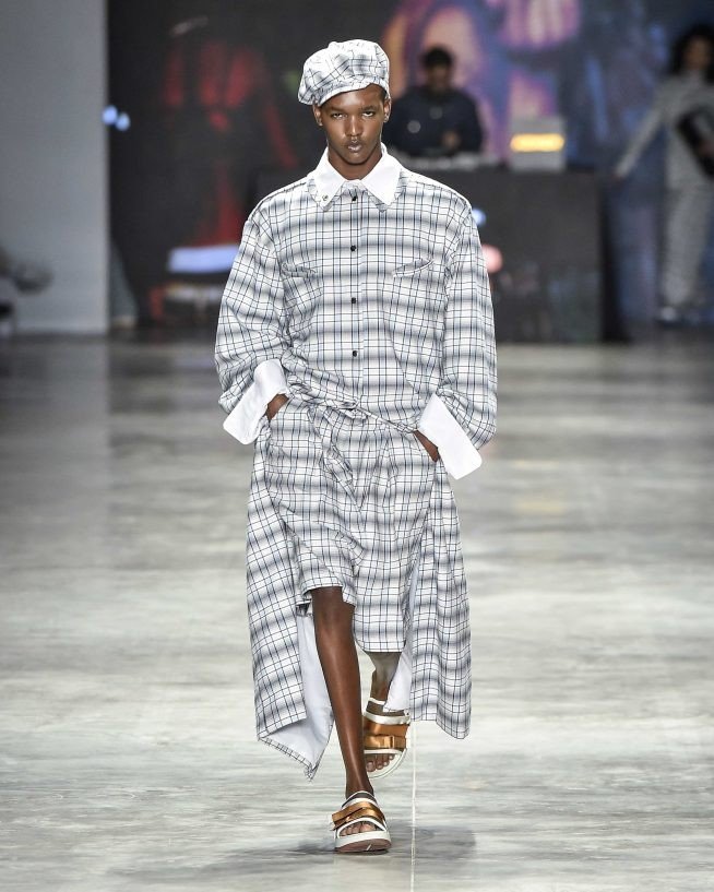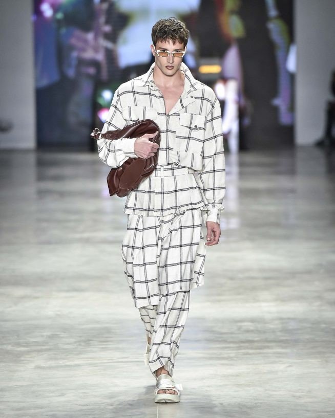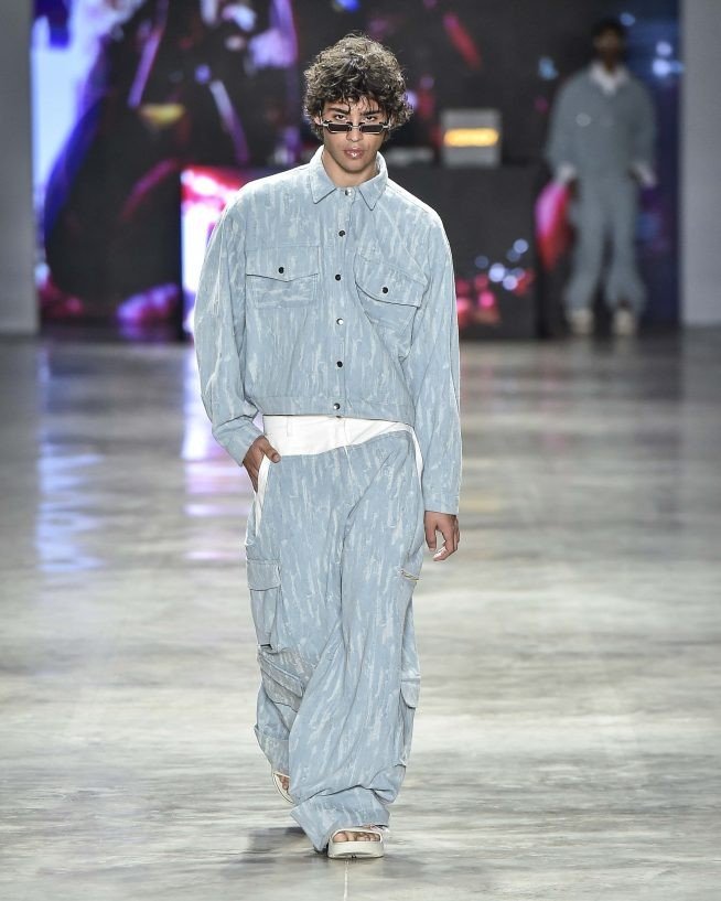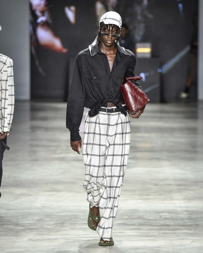 O monocromático de jeans, jaquetas bicolores de ombros largos e macacões industriais usados com boné. Há blusões, coletes de couro preto e bolsas tote com cores retrô, como verde oliva, amarelo mostarda e vermelho cereja. Os paletós sem lapelas com bermudões em xadrez – uma colaboração com a Dod Alfaiataria, casacos de estilo cafetão com a gola virada para cima estilo James Brown. Já os shorts minúsculos estão mais próximos dos funks carioca.