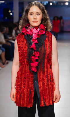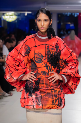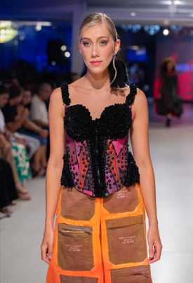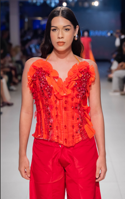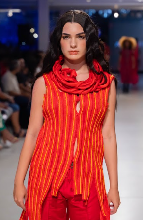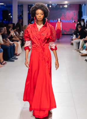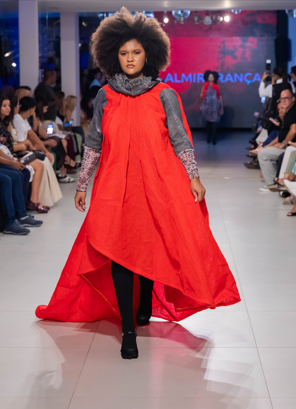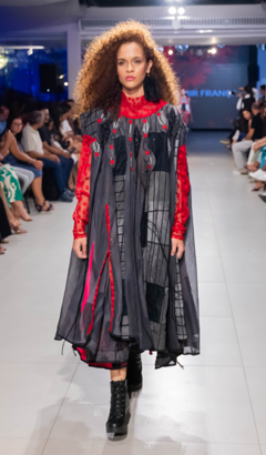 A coleção CAMINHOS foi desenvolvida com trabalho criativo e artístico a partir de reuso de uniformes e resíduas eventos na tonalidade vermelha que passa pelo laranja, cinza e NUANCES no preto, tem trabalho de patchwork e bordados em pedraria para deixa a peça iluminada e estilo clássico. Verdadeiras obras de arte da moda.