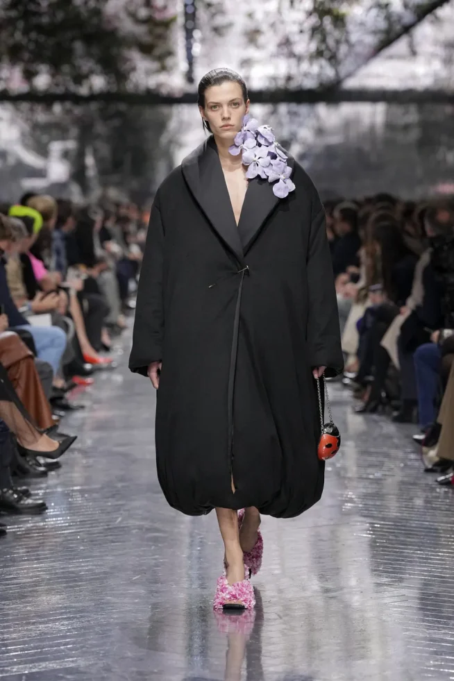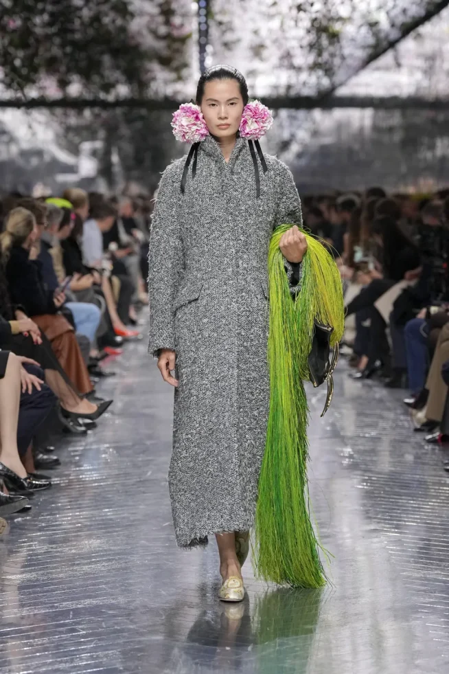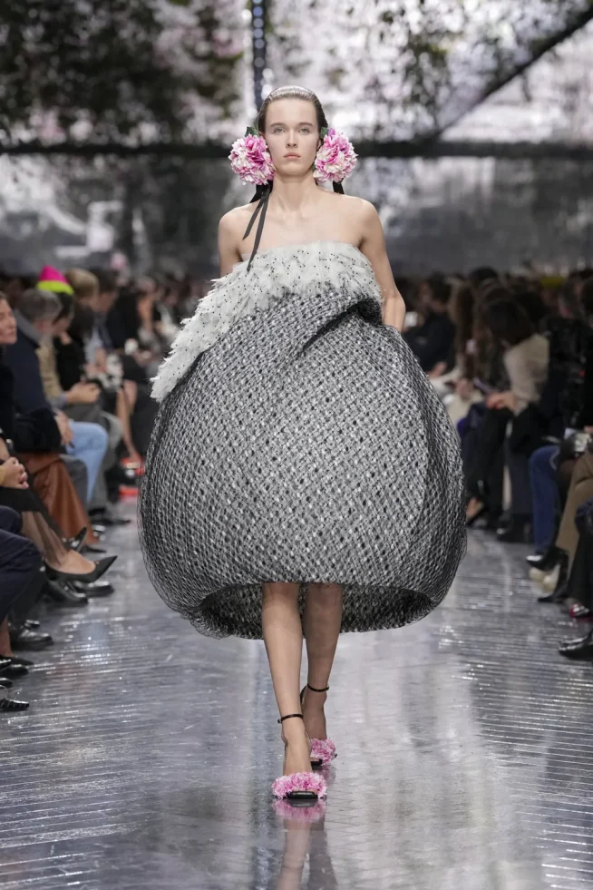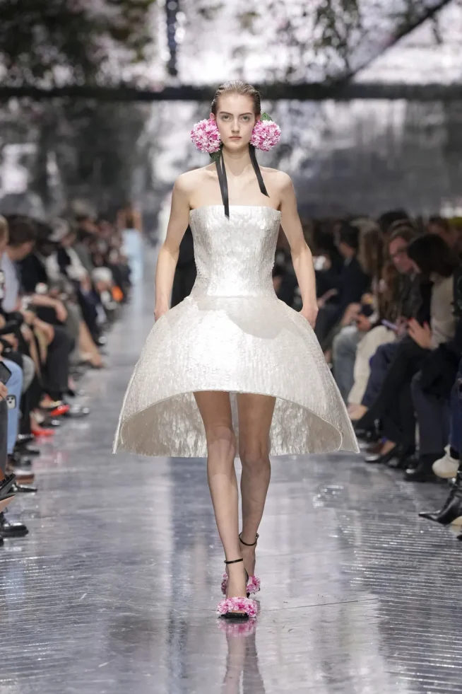As flores, evidenciam tema inerente à Dior. Pois Christian Dior cresceu na Normandia, cercado por jardins, se inspirou nas rosas desde a primeira coleção da casa e carregava lírios-do-vale no bolso como amuleto. O simbolismo à feminilidade de Jonathan Anderson remetem a influência botânica as Orquídeas, lírios brancos e suculentas são transformados em adereços de ombro, brincos arredondados, franjas presas na cintura e bolsas compridas.