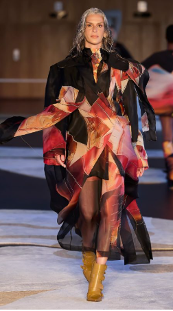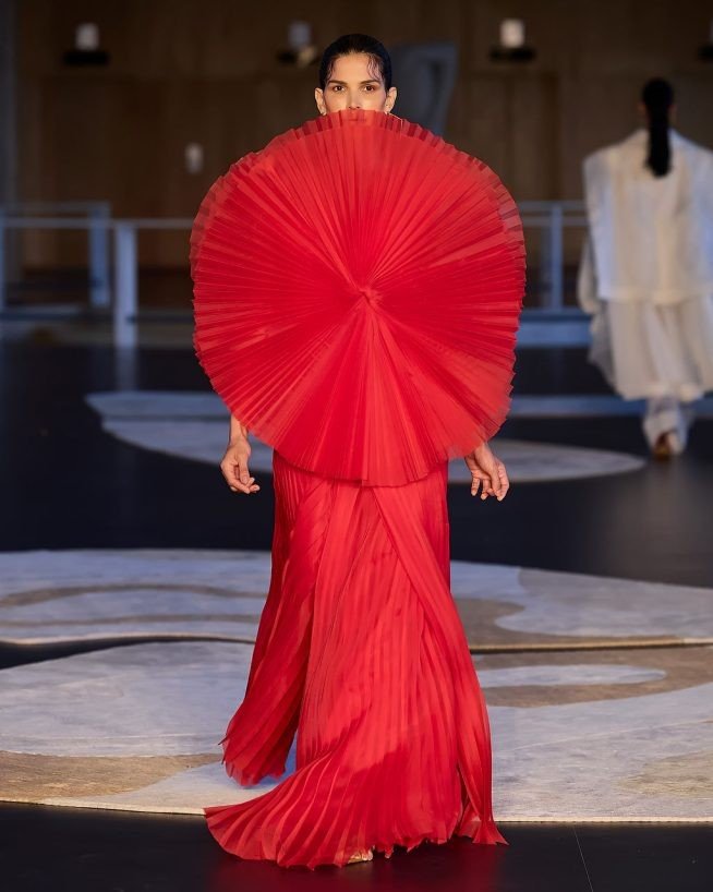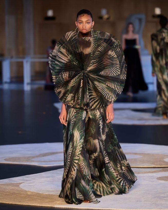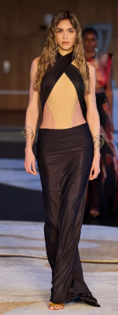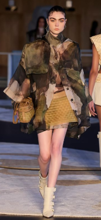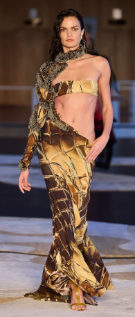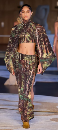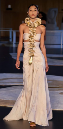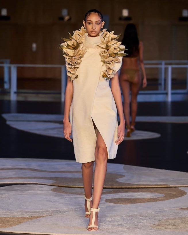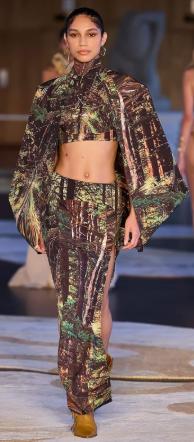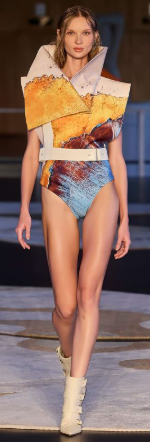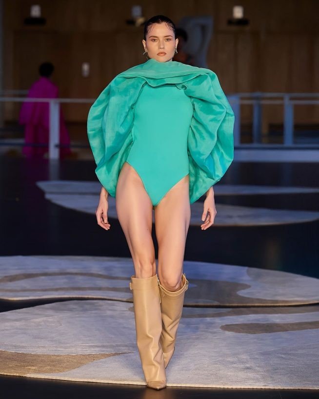 A coleção como inspiração imersiva em Inhotim, em Minas Gerais, a estilista referência três universos que sempre nortearam sua trajetória: botânica, arquitetura e arte. Estampas inspiradas no jardim-museu ganham uma interpretação artsy, em diálogo com matérias-primas sustentáveis, como o látex artesanal do Acre e peles ecológicas de salmão e pirarucu. Uma collab exclusiva com o próprio Inhotim reforça o vínculo entre moda e arte. Artsy são inspiradas em obras de arte, trazendo formas abstratas