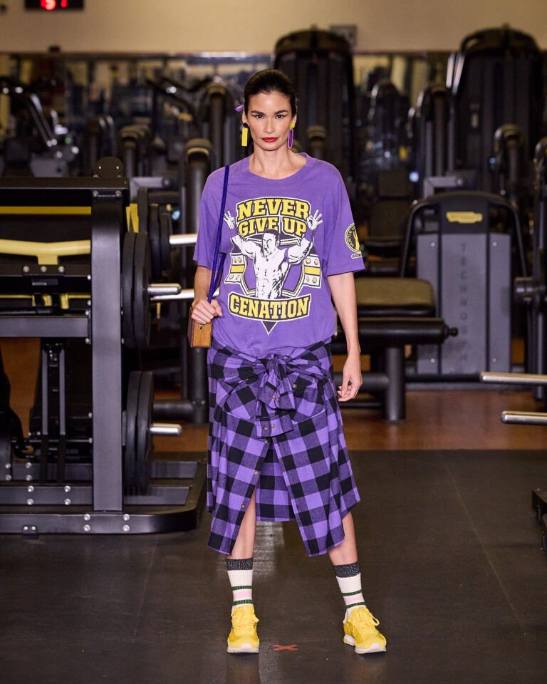 A cartela de cores que se entrelaça nos tons: branco, marinho, amarelo, roxo, royal, lilás, off-White, preto, tons de vermelho e verde, evocando tanto o desgaste natural do tempo quanto o espírito urbano-esportivo da quadra que serve de cenário para o desfile. Nos shapes, volumes amplos se alternam a estruturas mais ajustadas, revelando uma alfaiataria despretensiosa que conversa com a rua, e reforçando o conceito de movimento, leveza e liberdade que guia a coleção.