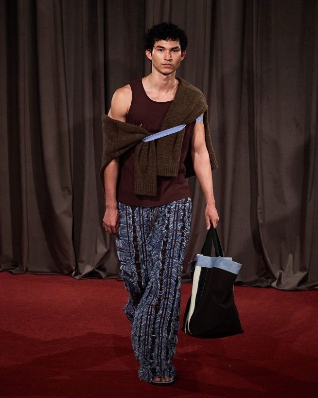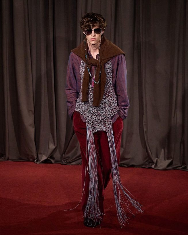 Refletir a cultura brasileira significa honrar as tradições e os regionalismos, e seu aspecto urbano e as influências que incorporamos de fora. A Misci inspirou-se na arte cinematográfica o “Novo de Glauber Rocha”, utilizando os crochês, franjas e bordados filé que evocam o artesanal nordestino que dividem com a alfaiataria afiada da grife, sem perder a essência e causar choque visual. Mas talvez seja essa a graça: o regional não é diluído, mas se impõe lado a lado com o global, tanto na estética, quanto na relevância.