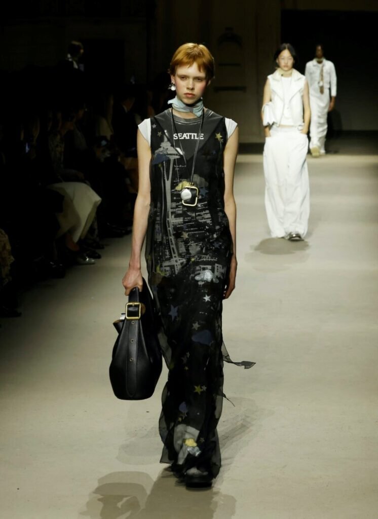 Stuart Vevers revisita códigos da cultura e da moda local – do jeans gasto às jaquetas de couro vintage, passando por referências diretas às ruas da Big Apple, como os táxis amarelos e os logos da cidade. Mas se nos últimos anos a marca buscou conquistar a geração Z coleções pop, o verão 2026 troca o excesso pela contenção.