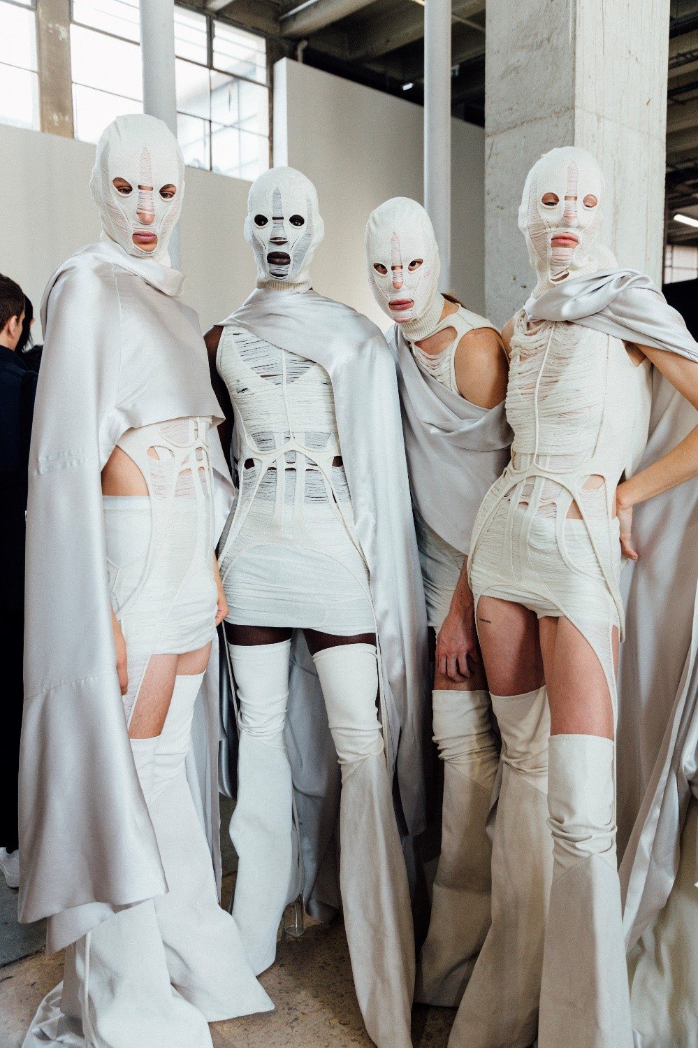 Vestidos vaporosos, lânguidos, capuzes, acetinados que parecem metal derretido. Suas ambivalências tão onipresentes. Ritualístico e escultural. E por mais que seja hoje um termo em estado de banalidade, Rick é um verdadeiro subversivo.