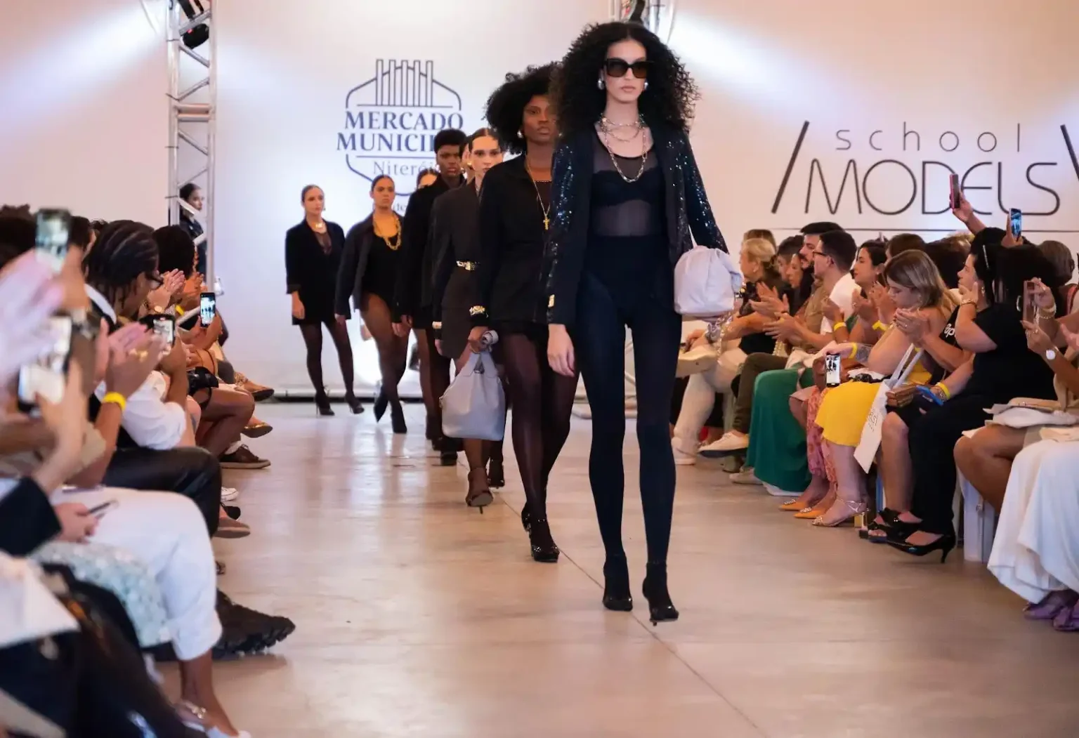 O SCHOOL MODELS FASHION SHOW aconteceu no MERCADO MUNICIPAL DE NITEROI – o desfile da ARREZO NITEROI destacou o empoderamento da mulher nas escolhas de seus calçados e acessorios com looks ALL BLACK e com acessorios em dourado / prata para iluminar a beleza feminina.