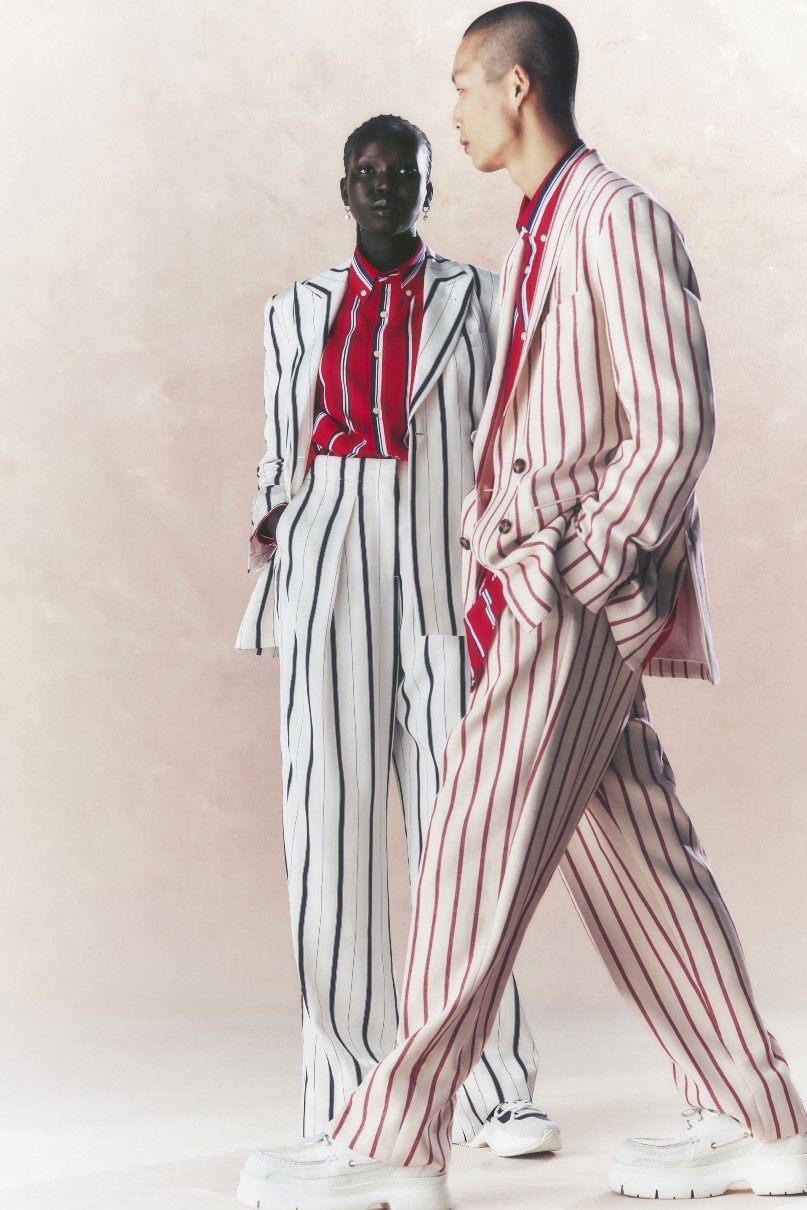 A nova coleção primavera 23 da Hilfiger, que o designer apresentou  tem essa pegada  geração do milenio e Z. “Gosto de me afastar apenas dos moletons”, diz Hilfiger, exibindo um par de calças de sarja imaculadamente adaptadas que ficariam ótimas com um suéter de tricô superdimensionado. “Fazemos muito streetwear há muitos e muitos anos e gosto quando fica muito mais elegante.”