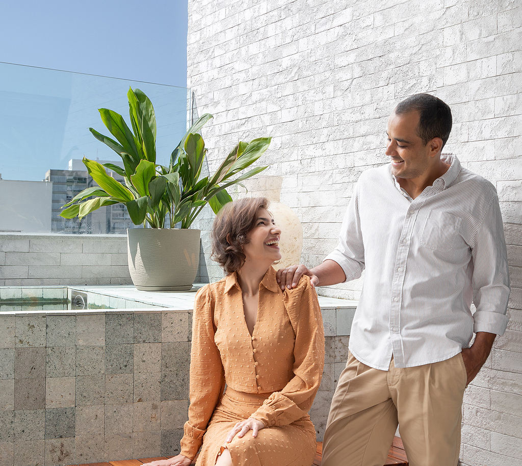 O casal de moradores Daniella e André. Foto: @LiliaMendel.Fotografia