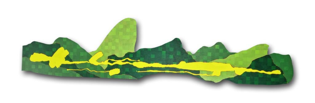 Um conjunto de obras com quadriculados, que lembram azulejos de piscinas, também chamam a atenção na mostra. “É uma memória gráfica da piscina, dos quadriculados que eu via durante as horas que passava nadando, e acabei incorporando aquilo quase como uma textura evidente do meu trabalho. Se olhar bem elas têm esse caráter gráfico que lembra um quadriculado e, ao mesmo tempo, gera uma tridimensionalidade que é aparente na hora em que a madeira é recortada”, conta o artista.