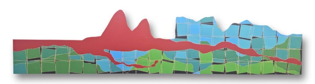 Os recortes nas obras, destacando as formas, também são outra característica marcante do trabalho do artista, assim como as cores fortes e vibrantes, que fazem referência à brasilidade. “Quando eu era criança uma das coisas que mais me impressionava eram os cartazes que havia na porta dos cinemas, com uma cena printada na madeira e recortada como se ela estivesse ganhando vida. Esse fator se repetiu durante todo um percurso da minha obra e, ao mesmo tempo, ganhou um elemento de pintura muito forte que é o cromatismo, que são cores vibrantes, que tem a ver com a nossa questão tropical. O Brasil tropical é colorido, a nossa flora é colorida”, diz o artista, que trabalhou muito tempo com paisagismo. “Linhas geométricas, volumes fragmentados e composições calculadas evocam a sua formação como arquiteto e sua capacidade de construir mundos visuais nos quais o rigor formal é permeado por uma inquietação subjetiva. Por vezes seu trabalho se apropria de elementos da fauna, da mitologia indígena e do imaginário popular para compor um léxico visual brasileiro que propõe uma síntese entre memória coletiva e fabulação individual, explodindo em cor, ritmo e densidade simbólica”, ressalta a curadora.