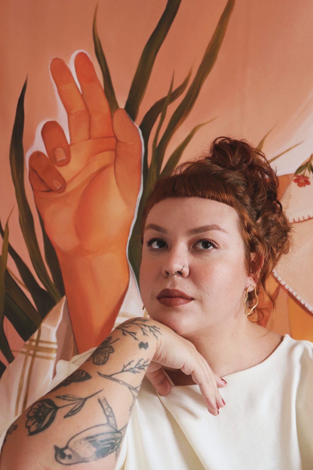 “Criei imagens que à primeira vista sugerem a docilidade esperada do gênero feminino, reforçadas pelos tons rosados, uma característica da minha produção, mas que revelam atividades de insurgência e rebeldia. Pintar elementos da vida doméstica aliados a atividades revolucionárias sugere um diálogo entre a vida privada e a vida pública, uma forma de repensar os territórios que nos são oferecidos”, diz a artista. “A ideia é justamente burlar a separação entre o pessoal e o político, reafirmada pelo isolamento que sofremos quando relegadas à particularidade do interior de uma casa cuja manutenção nos drena há gerações”.