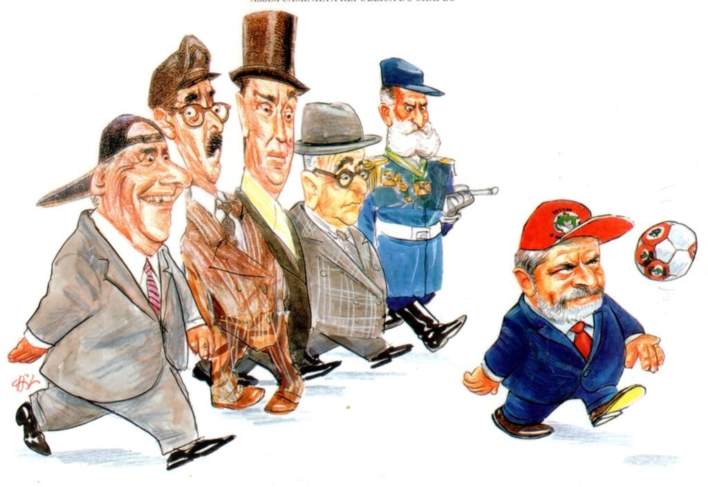 Há quatro décadas, Chico Caruso ajuda a retratar a história política e social do Brasil por meio de seus traços. Ao todo, a mostra apresenta 55 desenhos divididos em dois ambientes. De um lado, há uma seção batizada de “Galeria dos presidentes”, com uma charge para cada governo nos últimos 40 anos, de Tancredo Neves e José Sarney, passando por Fernando Collor, Itamar Franco e Fernando Henrique Cardoso, até Lula, Dilma Rousseff, Michel Temer e Jair Bolsonaro.
