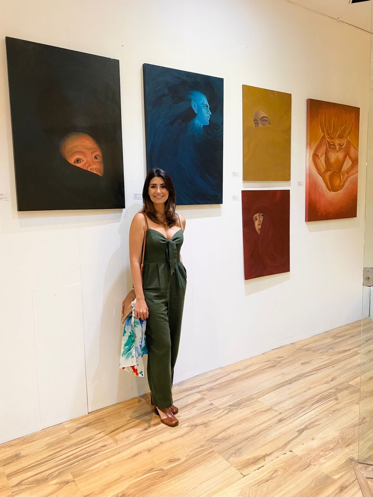 A artista plástica Isabella D’Elia participa da coletiva 7ª. Mostra Arte em Foco, na Galeria Via Parque, com cinco telas que trazem em reflexões pessoais sobre a experiência terrena, sua complexidade e mistérios da existência, expressam o belo, inovador e questionador.
