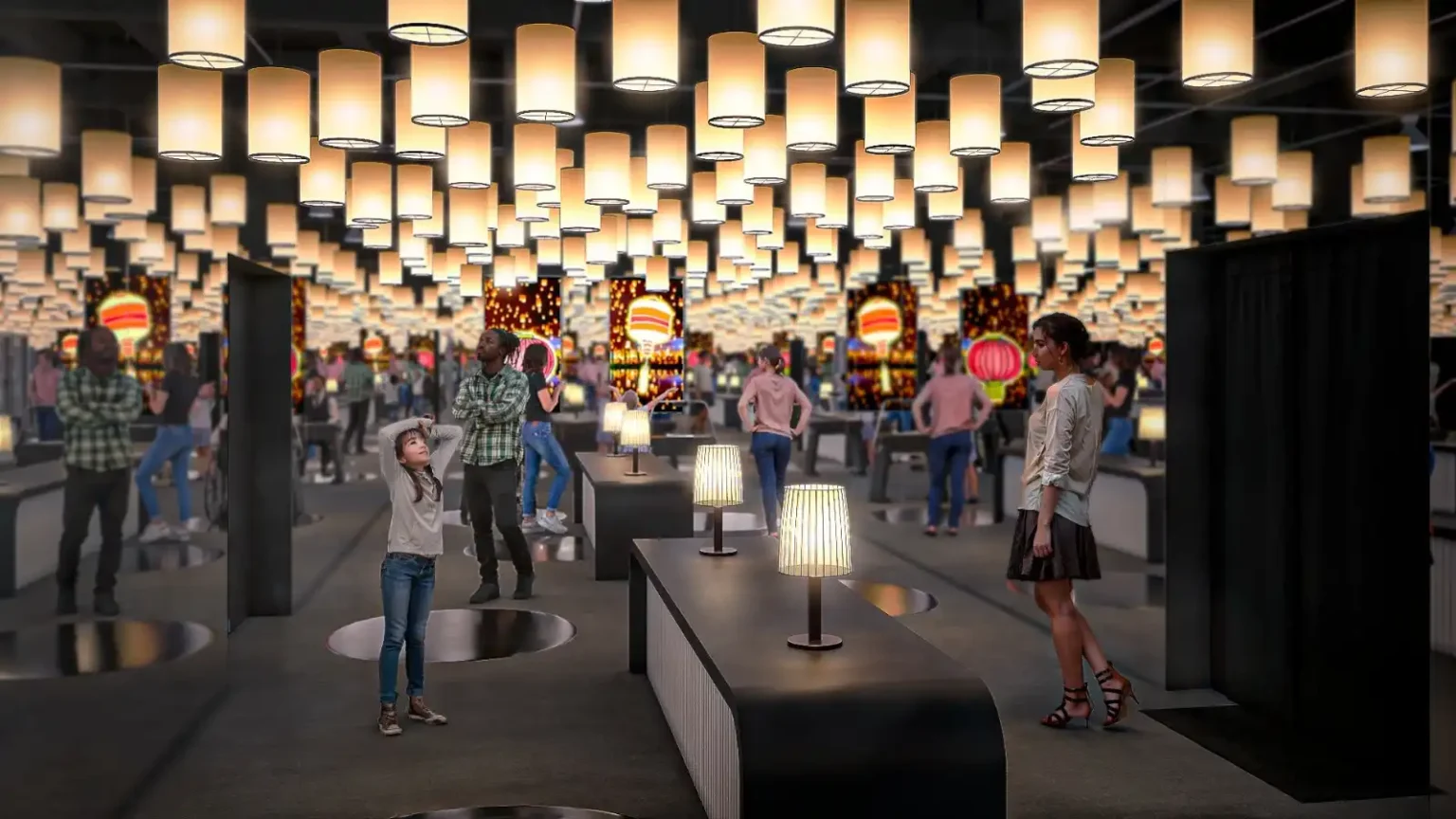 Encerrando as celebrações do Ano Novo Chinês, o Festival das Lanternas simboliza renovação e esperança. Esta área destaca a beleza das lanternas iluminadas que enchem os céus da China e a tradicional Dança dos Dragões, que marca o fim do ciclo lunar. Os visitantes participam de uma experiência imersiva entrando em uma sala de espelhos com lanternas brilhantes suspensas, recriando o espetáculo mágico desse festival. Antes de entrar na sala os visitantes veem imagens sobre o festival. Na etapa seguinte, o Festival da Lua é apresentado em um ambiente que remete à colheita e ao encontro familiar. Considerado o maior feriado outonal chinês, ocorre quando a lua está em seu auge, reunindo famílias para agradecer pela abundância e compartilhar o tradicional bolinho da lua, símbolo de união e prosperidade.
