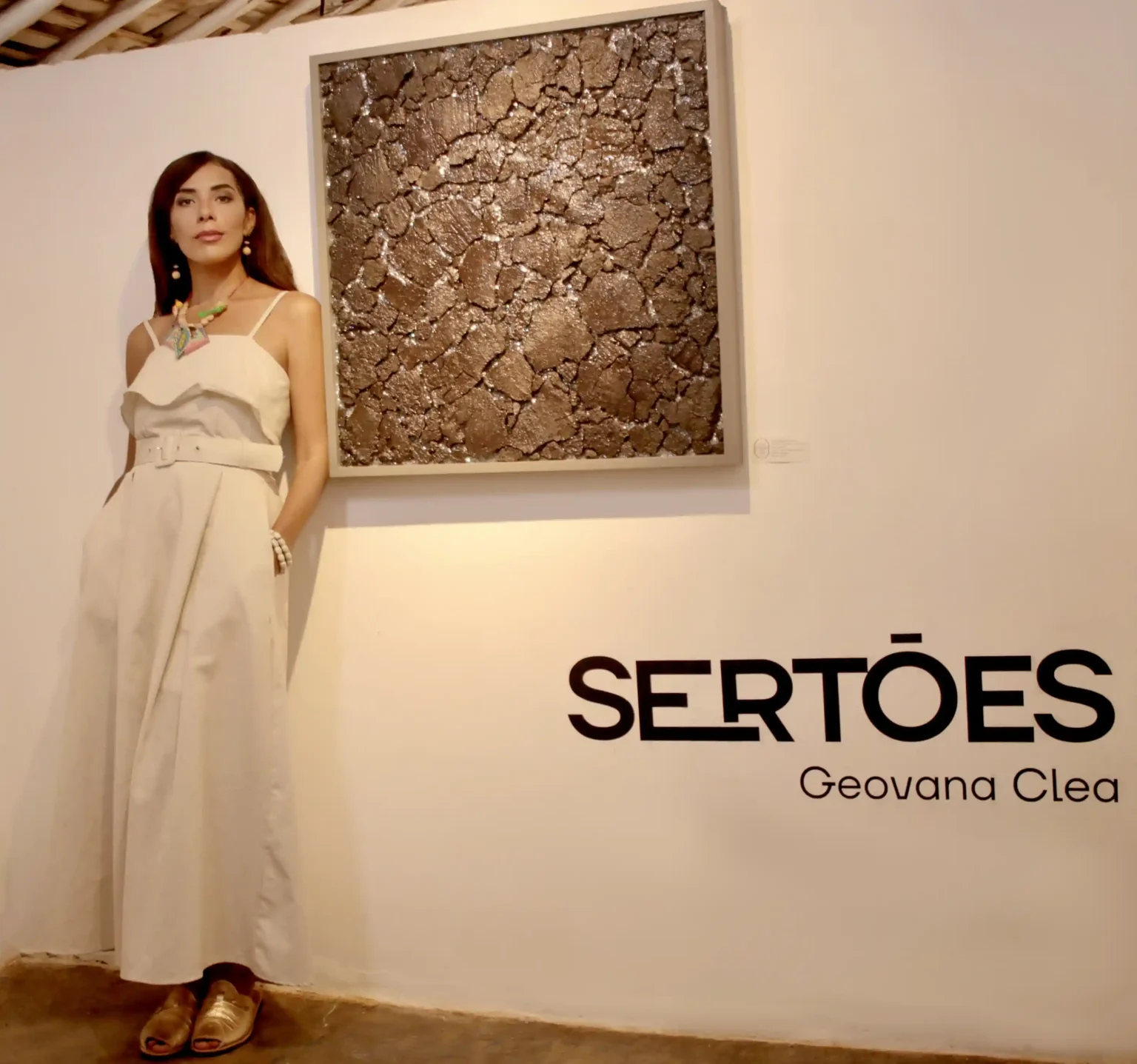 A artista plástica alagoana Geovana Clea apresenta a exposição “Sertões” na Galeria Dom, na turística Ilha do Ferro, em Alagoas. Na sua primeira mostra no Brasil expõe parte da série “Chão Rachado”. Sua obra é composta pelo barro preto da lagoa, que deu origem ao nome de sua cidade natal, Inhapi, e também de cristais Swarovski. A curadoria é de Rafael Gomes Brandão e fica aberta ao público até 10 de fevereiro.