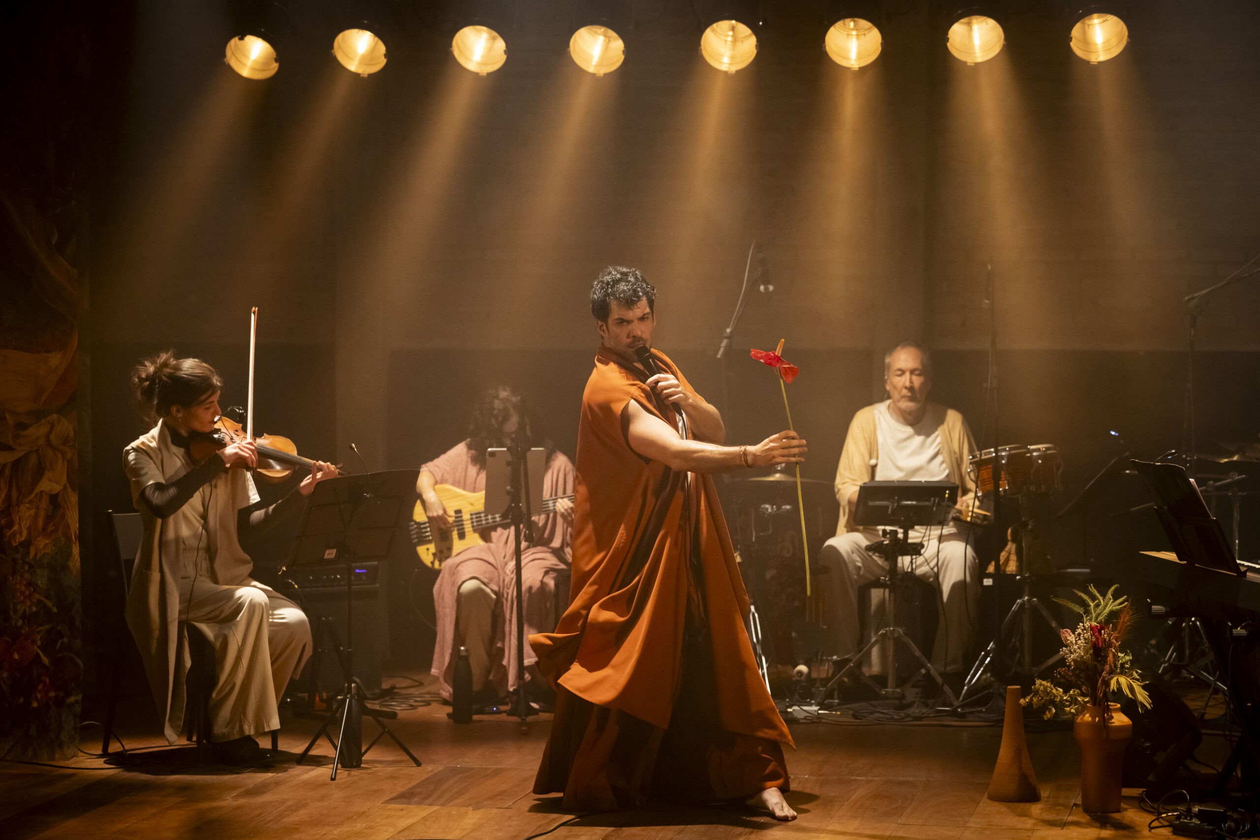 Elenco: Dude São Thiago (voz e cena), Iuri Salvagnini (piano), Mathilde Fillat (violino), Adriano Busko (percussão)