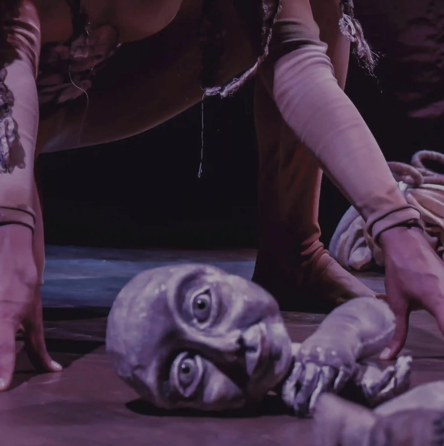 A apresentação opera num universo de imagens que oscilam entre a atriz solo Carolina Garcia, marionetizada e o boneco animado num espaço disforme e maleável, como uma realidade em constante transformação.