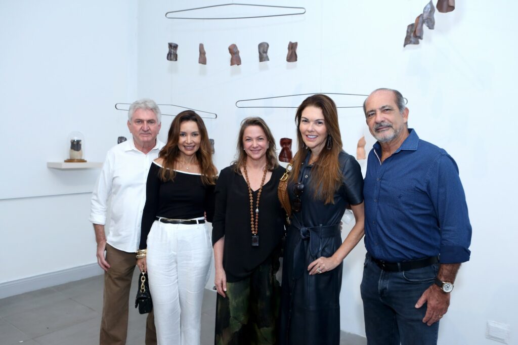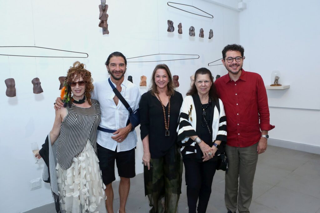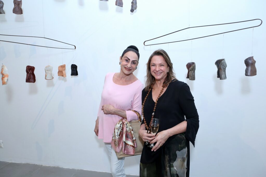 Por sua vez, Raquel Saliba apresenta um conjunto de corpos femininos que discutem a condição da mulher não apenas no contexto das violências físicas, mas também nas formas de negação da individualidade e da plenitude do ser produzidas por uma lógica patriarcal e por agressões simbólicas naturalizadas. Corpos acéfalos, reduzidos a troncos, instauram um discurso contundente sobre a experiência feminina no contemporâneo: a supressão da identidade como mecanismo de controle. Uma obra de caráter instalativo sintetiza a narrativa: cabides sustentam troncos femininos como se fossem mercadorias expostas, evocando a objetificação do corpo da mulher — transformado em produto, disponível ao consumo. Contudo, nesses corpos aparentemente destituídos de identidade reside uma força latente: se denunciam a redução e as violências, também afirmam autonomia, beleza e potência expressiva”, diz Sannon Botelho.