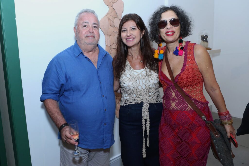 Já Raquel Saiba expõe delicados torsos femininos em cerâmica, submetidos a diferentes técnicas de queima ou moldados com tecidos ou transformados pela ação do mar depois de algum períodos de submersão. Alguns estarão suspensos em um conjunto de instalações que flutuam no ambiente, presos por fios de metal a armações de ferro; outros, “protegidos” por redomas de vidro ou agrupados, ostentando medidas diversas.