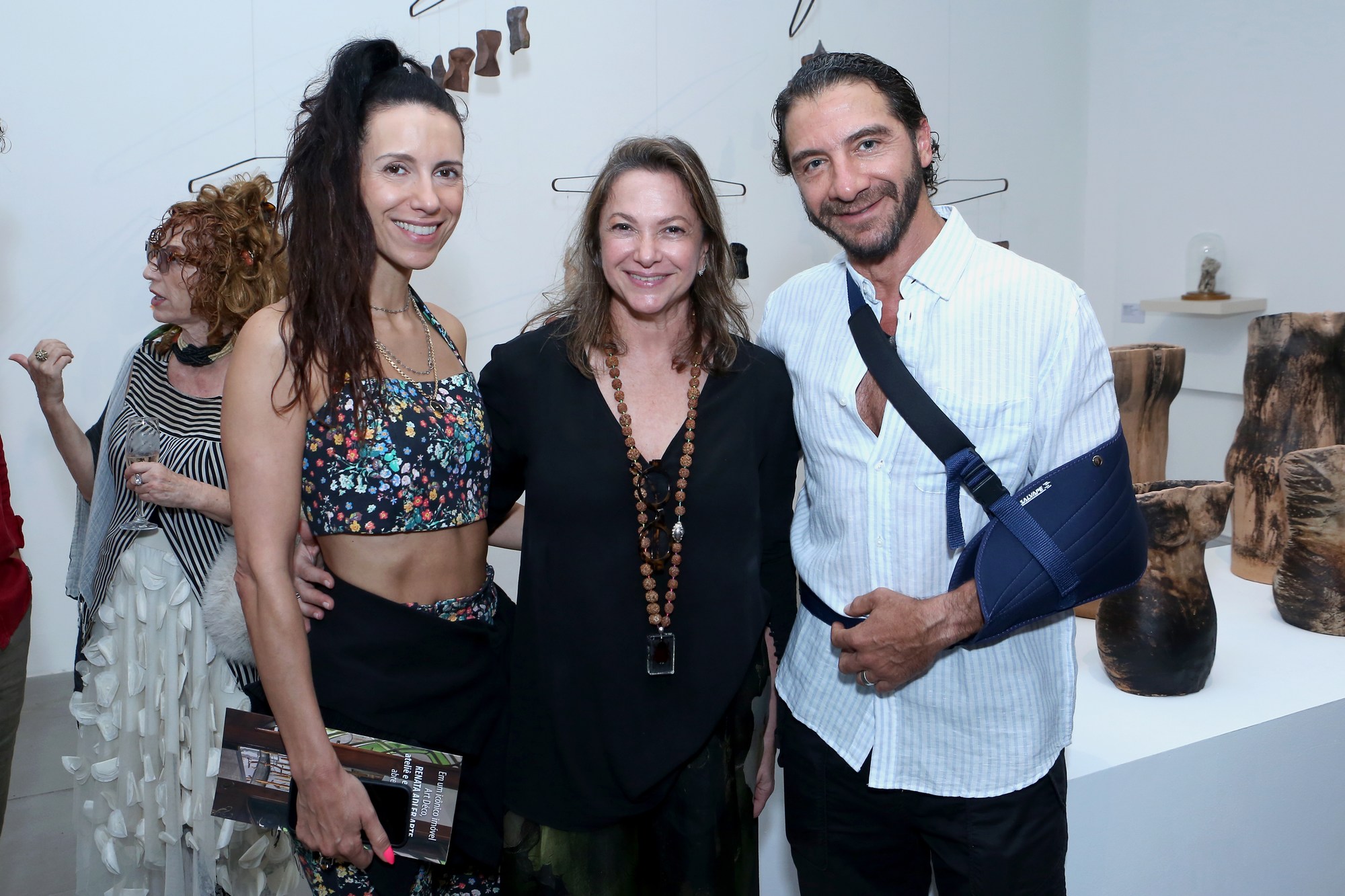 Já Raquel Saiba expõe delicados torsos femininos em cerâmica, submetidos a diferentes técnicas de queima ou moldados com tecidos ou transformados pela ação do mar depois de algum períodos de submersão. Alguns estarão suspensos em um conjunto de instalações que flutuam no ambiente, presos por fios de metal a armações de ferro; outros, “protegidos” por redomas de vidro ou agrupados, ostentando medidas diversas.