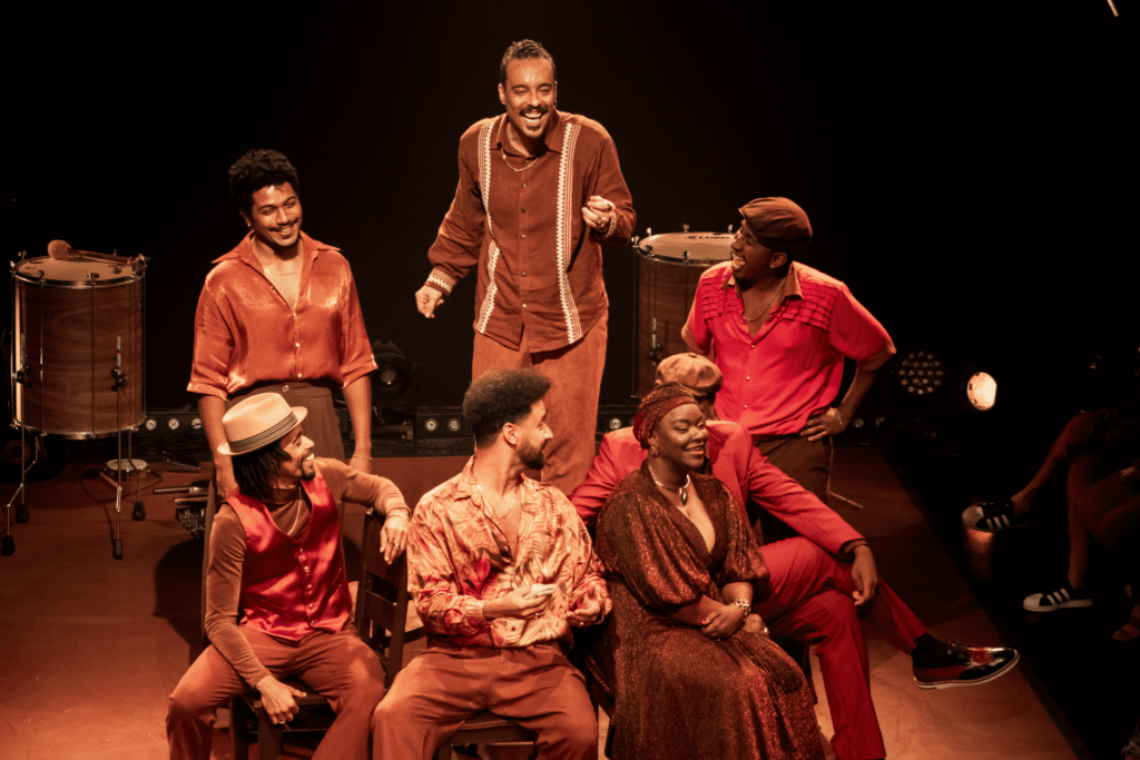 Em cena, cada roupa vestida no elenco traz um caráter muito específico, com referências que atravessam diferentes temporalidades do samba. “A gente partiu dos próprios atores. Cada um trouxe um sambista com quem se identificava, e a partir disso fomos construindo esse universo. É possível identificar a personalidade de vários sambistas e também o cuidado com o jeito de vestir, estrutura corporal e subjetividade dos atores”, explica.