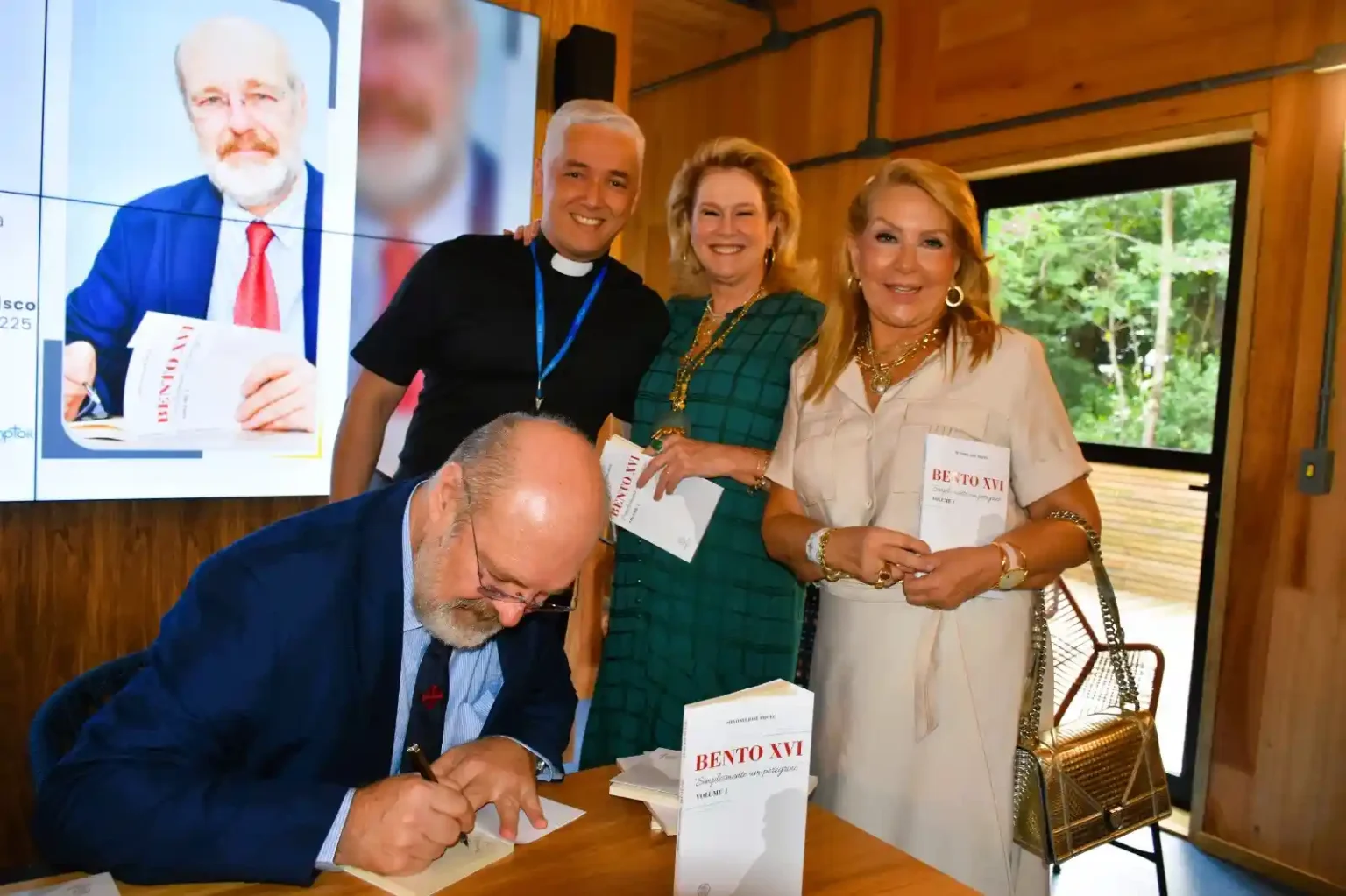 O salão Francisco da Puc Rio, recebeu mais de 100 convidados para o lançamento do livro “Bento XVI – Simplesmente um peregrino”, da Editora Angelus, na tarde de ontem. O autor, o paranaense Silvonei José Protz, que reside em Roma há 30 anos e, que dirige a Rádio Vaticano e o Vaticano News, veio especialmente ao Rio para o evento. O buffet by Éder Meneghine encantou os presentes com suas comidinhas e mini sanduiches. Isis Penido da Ordem Equestre do Santo Sepulcro de Jerusalém ajudou a receber os convidados com o Cardeal Orani Tempesta , o padre Omar e o reitor da Puc, padre Anderson Pedroso. Vejam nas Fotos de Ângela Gastaldi que clicou os presentes.