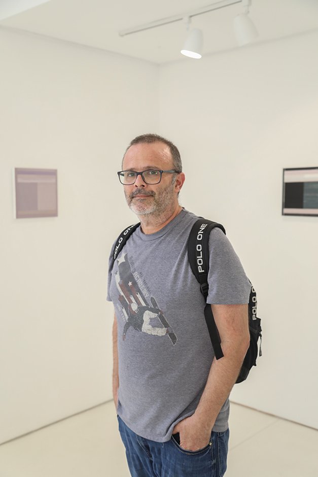 Ao estabelecer um contato paradoxal com a paisagem, o artista manipula desde pintura a óleo até cera de abelha e a poeira do seu ateliê, frequentemente com vista a um jogo com faturas levemente espessas de tinta tensionadas pela reiteração do desenho e pela percepção ambígua da cor provocada pela incidência de luz.
