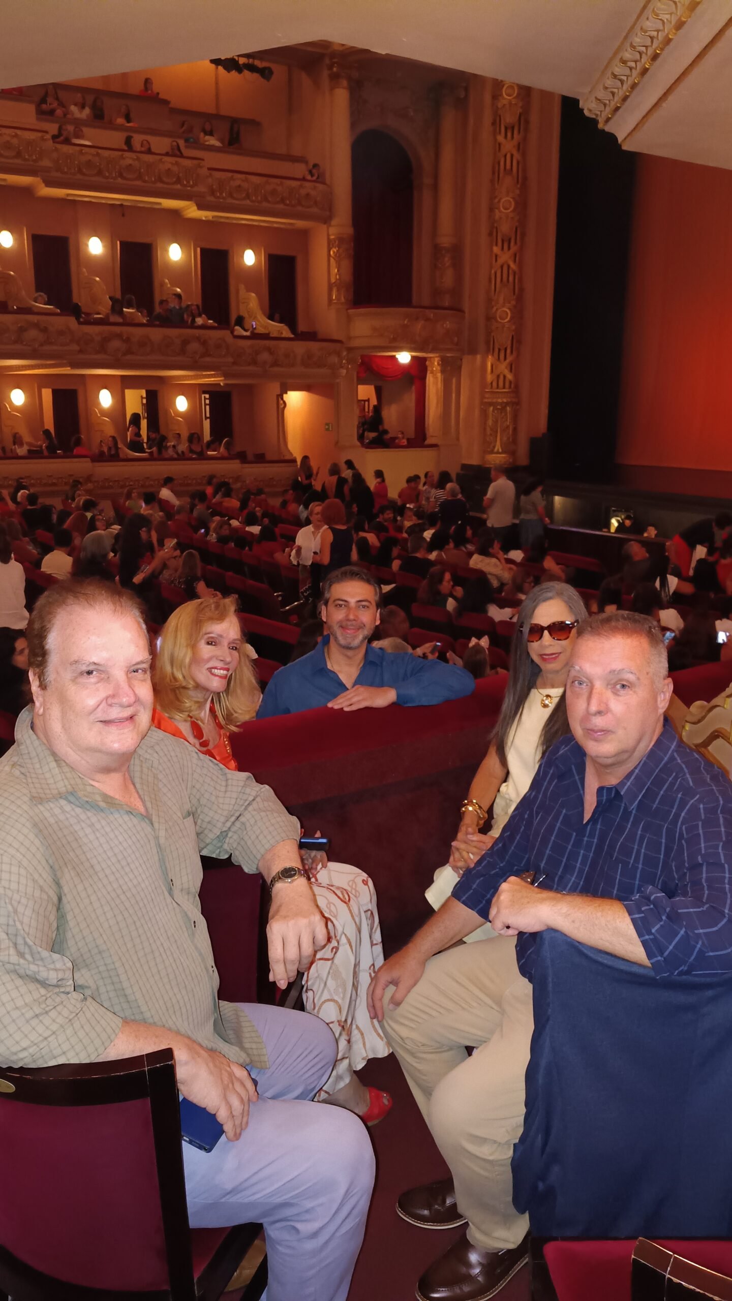 Acompanhados pelo vice-presidente executivo da Associação dos Embaixadores de Turismo do RJ, Bayard Boiteux, os convidados foram recepcionados na frisa com espumante e tiveram a oportunidade de visitar os bastidores do teatro.